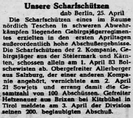 kleinen Bericht über die Abschüsse von beiden Scharfschützen gefunden,