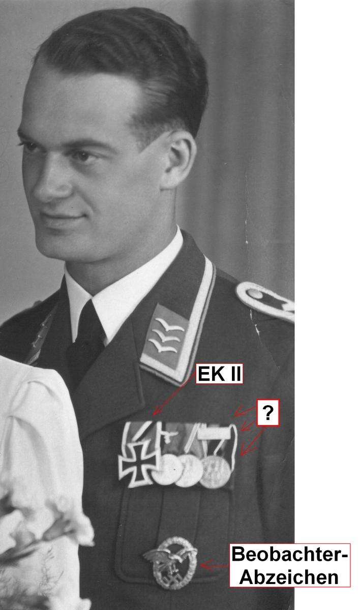3. Die Bandschnalle unterhalb der Frontflugspange scheint mir die Auszeichnungen, die bereits auf dem Hochzeitsfoto zu sehen sind, zu wiederholen (?).