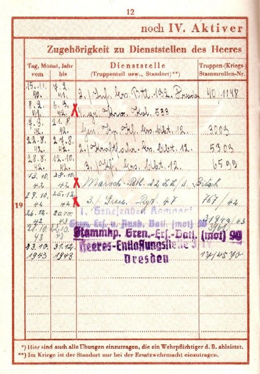 8.Feburar 1941 bis 6.März 1942 bei der "4. gr. Kw. Kol. 533", also 4. Abteilung grosse Kraftwagen Kolonne 533.
