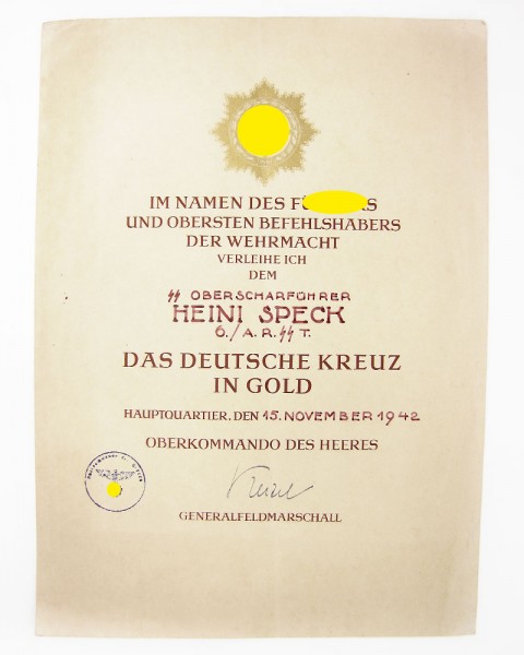 Die DKiG-Urkunde wird gerade für "nur" 3.900.- Euro bei Trave Militaria angeboten.