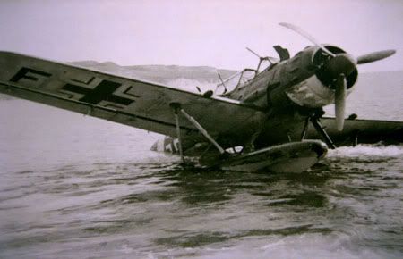 sinkende Arado196 der Aufkl.Gr. 126 (Archiv Chris König)Unmittelbar nach dem Luftkampf fielen die Gegner über GK 91 her und brachten dort die 3,7 cm Kanone zum Ausfall. Vier Soldaten waren tot, vier Männer waren schwer und vier leicht verletzt.