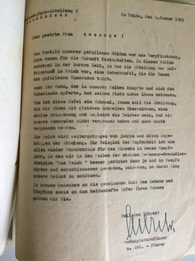 Habe einen alten Brief gefunden, über die Erstellung einer Gedenktafel für die  SS-Panzer-Grenadier-Division "Das Reich".