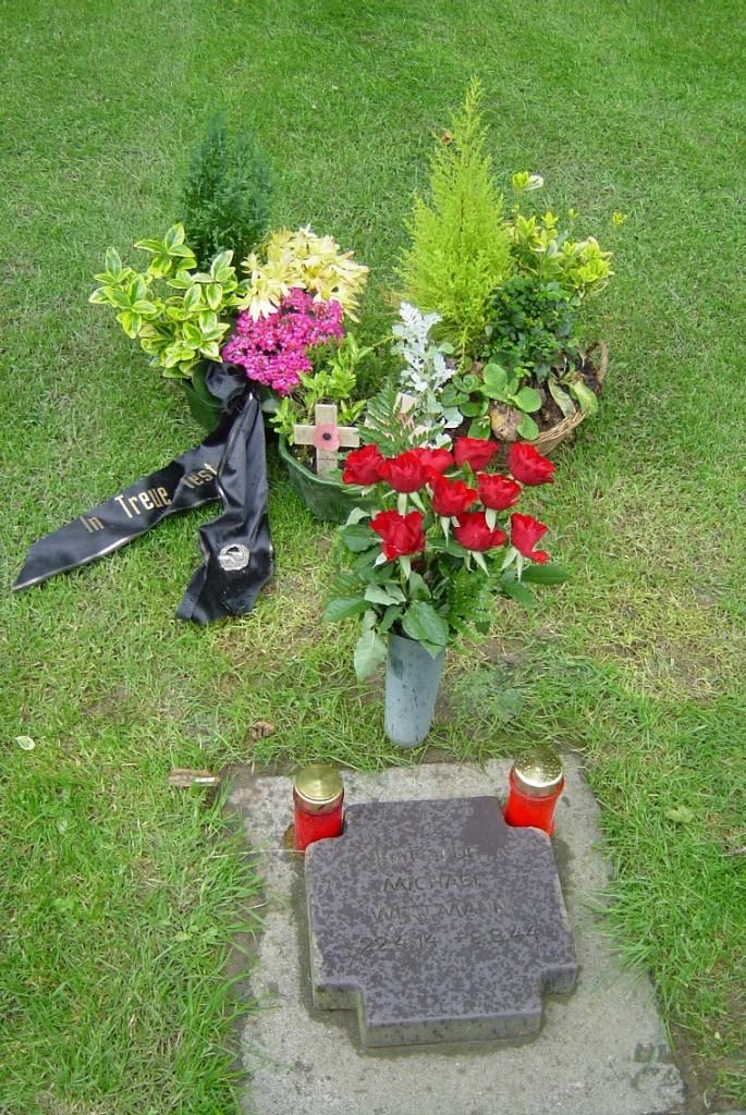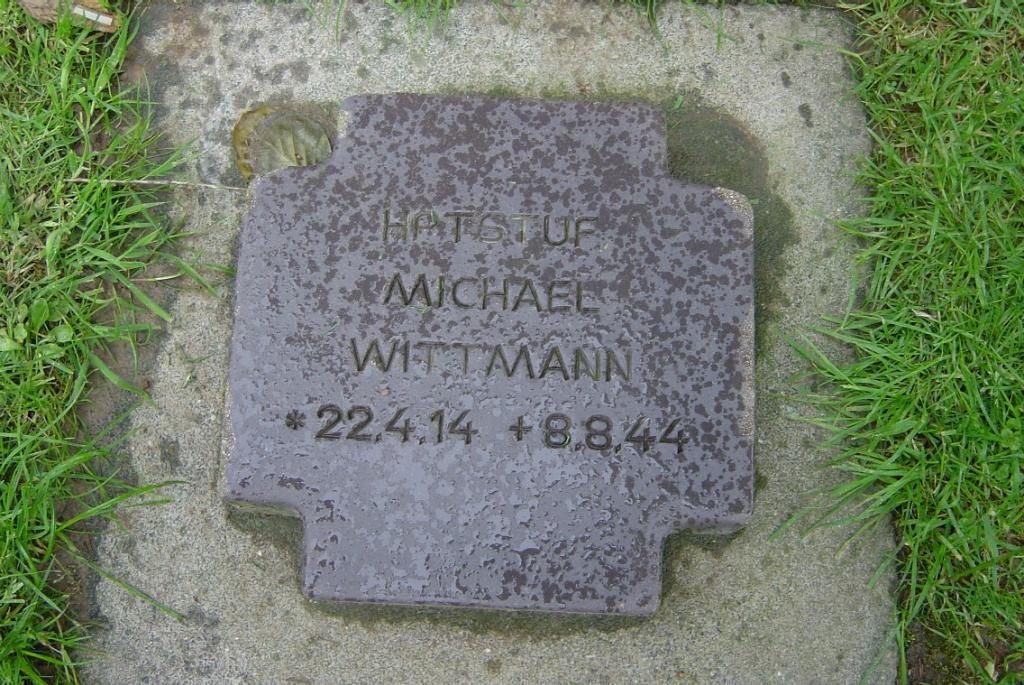 Michael Wittmann, eines der wenigen Gräber, an dem Blumen und ein Kranz steht.