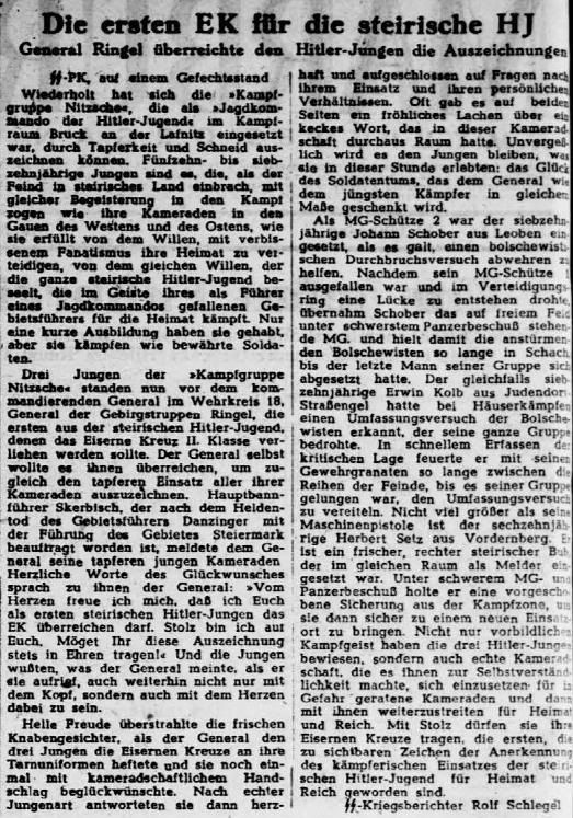 Die Marburger Zeitung vom 26.04.1945 berichtet von einer EK2-Verleihung durch