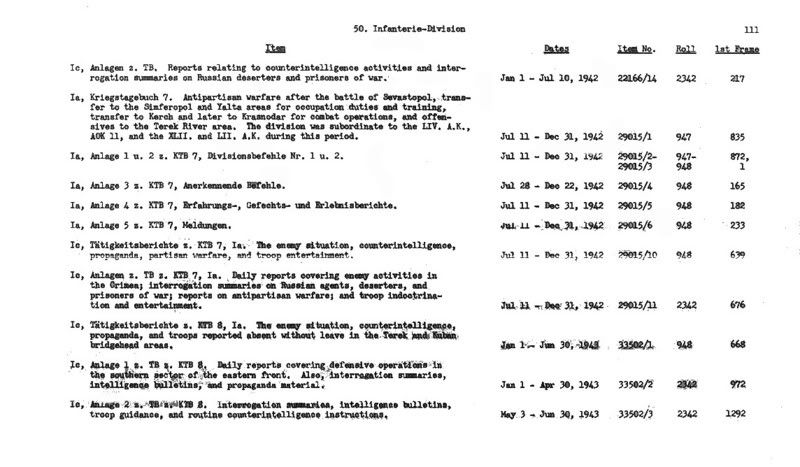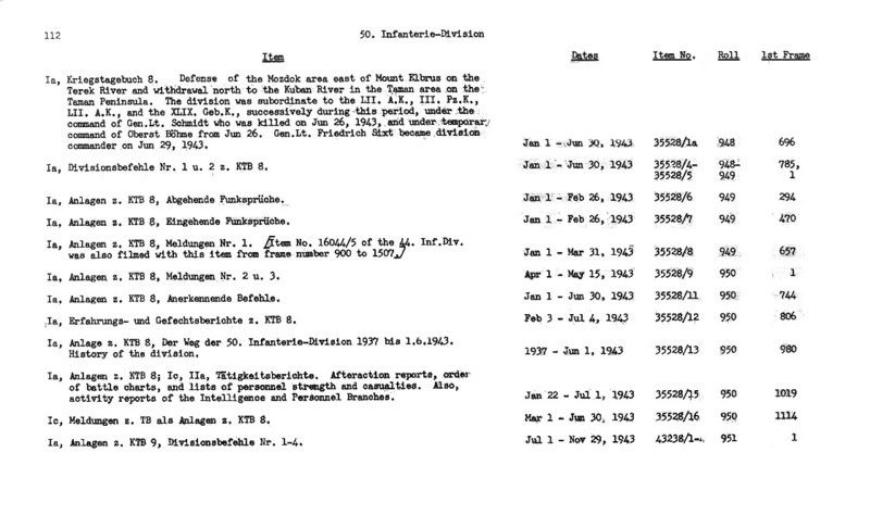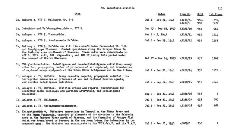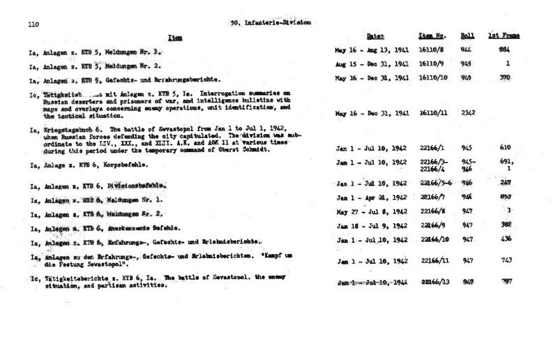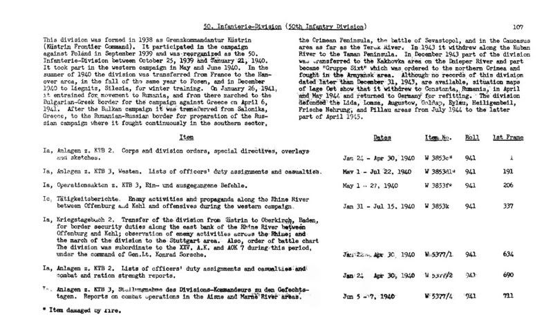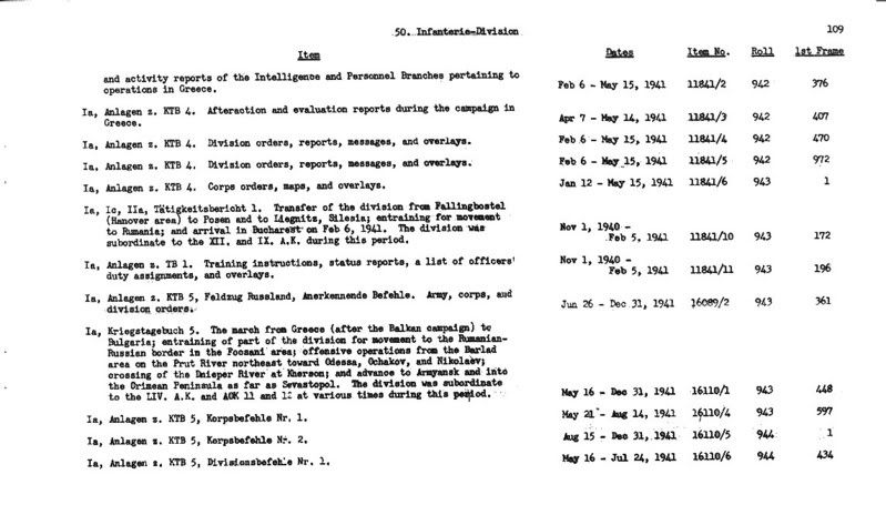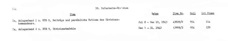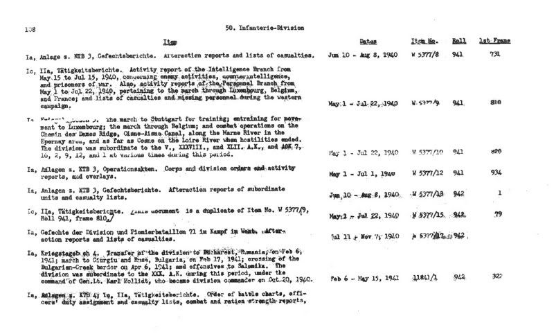 So sieht die Beschreibung der Rollen mit den Kriegstagebüchern einer Division aus, z.B. der 50. Inf.Div.