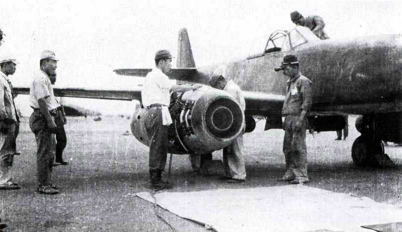 Das gezeigte Düsenflugzeug das ähnlich aussieht wie eine Me-262, ist aber eine Nakajima J8N1 Kikka....