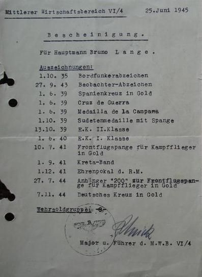 DKiG am 07.11.1944 als Hauptmann und Kampfflieger, wahrscheinlich KG 3